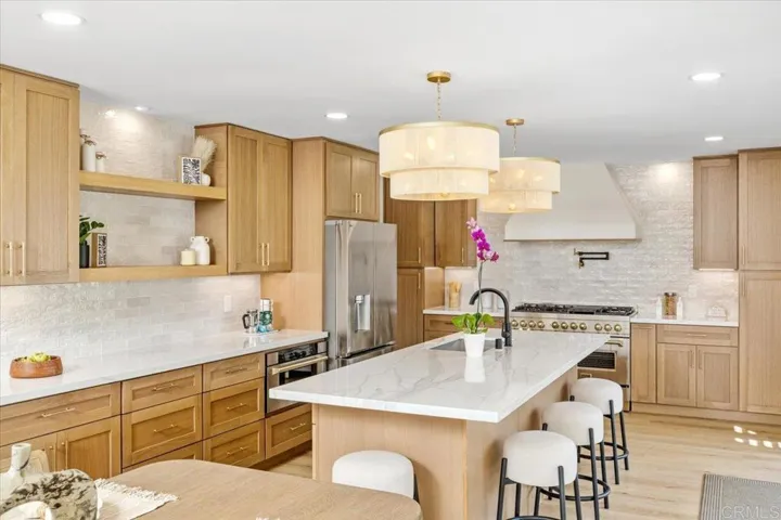 Tucked quietly at the end of a peaceful cul-de-sac in the heart of Olde Carlsbad, this fully reimagined coastal sanctuary sits on an expansive .23-acre lot just minutes from the beach inviting you to live, breathe, and feel the true essence of Southern California living. From first glance, the home’s striking curb appeal captures your attention. The brand-new wood-paneled garage door, fresh modern paint, and thoughtfully designed landscaping signal what’s to come: a home transformed with intention, craftsmanship, and heart. Remodeled top to bottom by Barker Brand Renovation known for their signature philosophy, “If you’re going to do it, do it right” this home reflects uncompromising quality in every detail. Step inside and feel the impact immediately. The dramatic living room is flooded with natural light from a large skylight and elevated by vaulted ceilings and a stunning 71” electric fireplace set into a custom designer wall with built-ins and niche lighting. The newly added mudroom enhances daily living with both beauty and function. At the heart of the home is the chef-inspired kitchen crafted for those who value both elegance and performance. Quartz countertops, a massive 9-foot island, custom cabinetry, and a full-height backsplash with integrated lighting create a sophisticated, showstopping centerpiece. A custom 48” hood and top-tier ZLINE appliances, including a 7-burner double oven, make hosting effortless. Ten-foot accordion doors expand the entire space into the backyard for true indoor-outdoor living. A versatile fourth bedroom with double glass shaker doors and a full closet offers a perfect flex space for an office, studio, guest room, or den. The primary suite is a serene retreat with a custom-built closet system and direct sliding-door access to the backyard. The spa-worthy ensuite bathroom elevates the everyday with a double vanity, Quartz counters, champagne bronze Delta fixtures, and an oversized walk-in waterfall shower wrapped in floor-to-ceiling tile with a pony wall and built-in bench. Secondary bedrooms are spacious and warm, while the guest bath features a chic herringbone accent wall and a custom glass sliding shower/tub combo with matching designer finishes. Outside, the expansive .23-acre lot offers endless opportunitycomplete with a patio, Alumawood pergola, new landscaping, and storage shed creating the perfect setting for gatherings, play, or quiet evenings under the stars. The garage is fully finished with fresh paint, recessed lighting, and a pristine epoxy-coated floor ideal for a workshop, gym, storage, or simply a polished extension of your living space. Additional upgrades include all-new LVP flooring throughout, new tile in bathrooms, modern baseboards, new interior and exterior doors, recessed lighting, ceiling fans, exterior/interior paint, and a new water heater all reflecting the home’s complete transformation. Perfectly located just minutes from Carlsbad State Beach, Agua Hedionda Lagoon, downtown Carlsbad, walking distance from top-rated schools, shopping, and dining this home is the perfect blend of modern luxury, thoughtful design, and relaxed coastal lifestyle. This is more than a home. It’s a lifestyle. It’s a feeling. It’s where your next chapter begins.