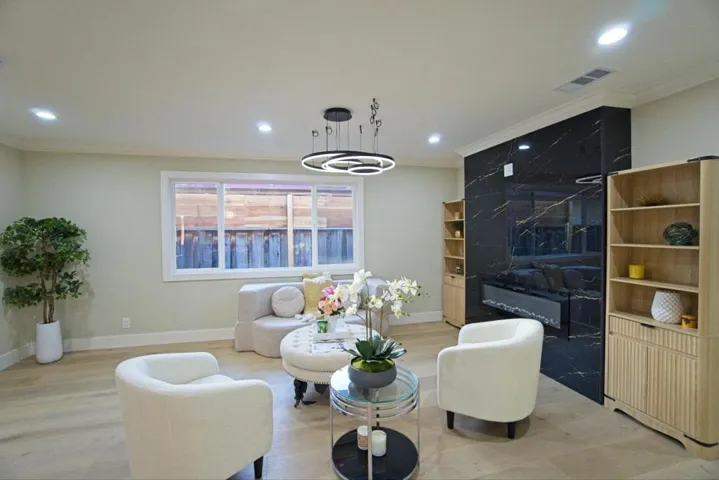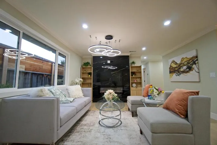 RENOVATED WITH PERMITS, CITY PERMIT FINAL APPROVED. Welcome to this East-facing spacious 4-bedroom, 3-bathroom home in the vibrant city of Sunnyvale’s Ponderosa Park neighborhood. 2 bedrooms are primary bedrooms with their en-suites bathrooms. Generous 1,582 sqft of living space, this property offers a comfortable and modern lifestyle. The kitchen is a chef’s dream, featuring quartz countertops, a gas oven range, dishwasher and a skylight that fills the space with natural light. The family room, dining area & outdoor gazebo provide a perfect setting for family & friends gatherings. This home includes 2 primary bedrooms with updated bathrooms. The flooring throughout is engineered wood, enhancing the home’s warmth and style. Enjoy cozy evenings by the fireplace, and benefit from central AC and heating for year-round comfort. Improved amenities include a 2-car garage with EV outlet, laundry facilities with gas dryer hookups in the garage, and energy-efficient features such as double-pane windows and Energy Star appliances. Located in the Santa Clara Unified School District, this property is an excellent choice for those seeking a family-friendly environment. It is just 1 block away from Ponderosa Park.