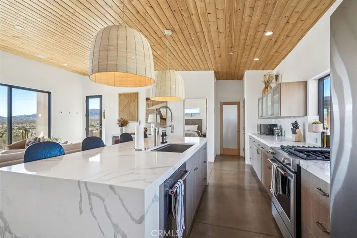 Welcome to 59080 Nelson Avenue — Very strong Airbnb home, with over $82,000 of str income for the 2025 calendar year. A newly constructed 2-bedroom, 2-bath modern desert retreat built in 2023, perfectly positioned in the sought-after Yucca Mesa neighborhood, just minutes from Joshua Tree National Park, Pioneertown, and downtown Yucca Valley’s shops and restaurants. This exceptional home seamlessly blends sophisticated design, smart technology, and serene desert surroundings for the ultimate indoor-outdoor lifestyle. The property is equipped with solar panels, providing energy efficiency and sustainability year-round. Currently operating as a highly successful Airbnb with numerous positive reviews, the home offers both investment potential and luxurious livability. Enter through the automatic gate into a fully enclosed property surrounded by a 10-foot wood privacy fence and lush, drought-tolerant landscaping with Bluetooth-controlled irrigation. Outdoor spaces were designed for relaxation and entertainment, featuring a custom deck, cowboy pool with lighting, Plunge cold plunge, jacuzzi, Clearlight UV sauna, gas fire pit, and RH fountain. Enjoy music through the outdoor SONOS speakers or unwind in one of the hammocks while taking in panoramic desert views. Every detail has been thoughtfully curated to create a seamless blend of comfort, privacy, and luxury. Whether as a full-time residence, weekend escape, or high-performing short-term rental, 59080 Nelson Avenue captures the essence of elevated desert living — where tranquility meets modern design, just moments from Joshua Tree.