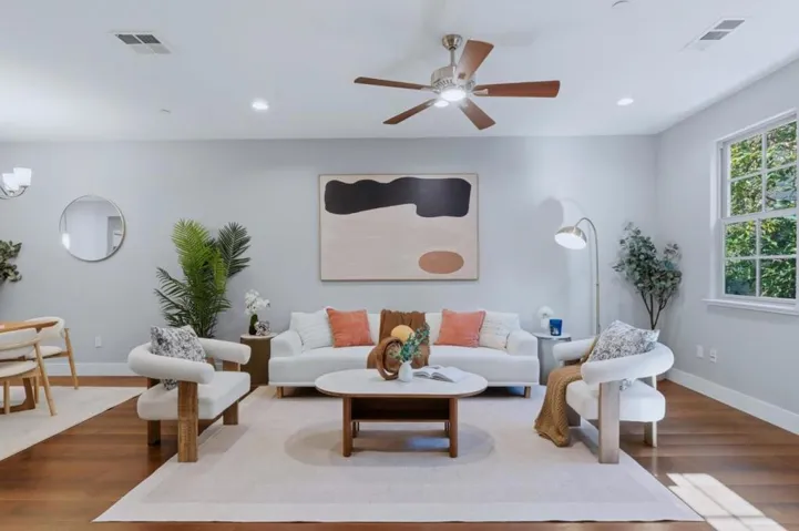 Location, location, location! Welcome to this stunning, like-new quiet corner-unit townhome in Sunnyvales desirable Lawrence Station community. Meticulously cared for, this home features an east-facing entrance and is just a short walk to Lawrence Caltrain, offering effortless access to Silicon Valley and the greater Bay Area. This true townhome features LOW HOA dues (including trash), smart-home upgrades, and dual-zone heating and A/C. The ground level includes a private bedroom and full bathroom, ideal for a home office, gym, or guest space. The main level showcases a bright open-concept design with a gourmet kitchen featuring a massive island, breakfast bar seating, and a spacious pantry. A built-in desk creates a perfect work-from-home nook. Upstairs, the oversized owners suite offers dual sinks, a walk-in shower, and a large upgraded walk-in closet. Two additional bedrooms, an upper-level full bathroom, convenient laundry, and a side-by-side two-car garage complete the home. Community amenities include a BBQ area and security cameras. Ideally located near Downtown Sunnyvale, major tech campuses, parks, and playgrounds. Don’t miss this exceptional opportunity!