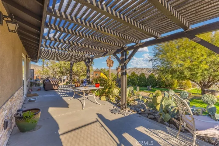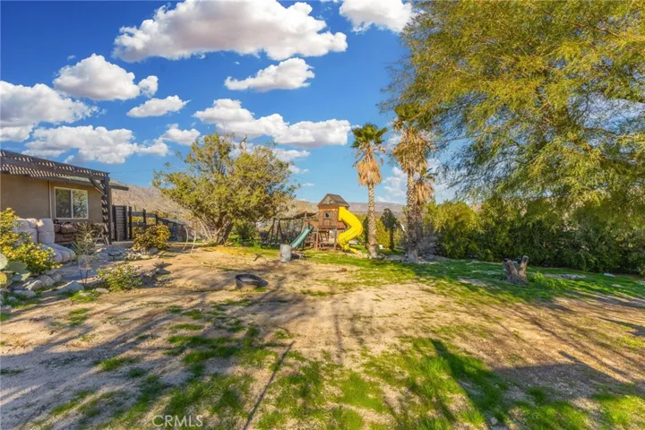 **Wood floor has been removed, and new carpet has been laid** Set against the wide-open beauty of Morongo Valley, this 3-bedroom, 2-bath home offers space, privacy, and hill views on a sprawling 0.82-acre lot. Inside, the front door opens into a roomy living area anchored by a glass back patio door that fills the space with natural light. The layout flows into the dining room, where a wood-burning furnace provides warmth and character, and continues into a fully remodeled kitchen. The kitchen features abundant counter space, generous storage, and updated stainless-style appliances, with plenty of room for a coffee bar or additional prep space. The primary bedroom is generously sized with tile flooring and its own private bathroom featuring a walk-in shower, extra roomy counters, and built-in cabinetry. Two additional bedrooms provide flexibility for family or guests and are conveniently located near a second full bathroom with a tub/shower combination and a wide vanity. Outside is where this property really stands apart. A covered porch with a wood pergola opens to an expansive backyard framed by mature trees and sweeping hill views. There’s room for gardening or entertaining, along with a small horse riding ring. Lots of room for additional big toy storage, plus a backyard shed. Additional highlights include two-car garage and extensive parking with RV access, solar panels, and a water softening system. The location offers a quiet, laid-back atmosphere while remaining just a short drive from Highway 62, with convenient access to Yucca Valley, Joshua Tree, and Palm Springs. Broker and agents do not represent or guarantee the accuracy of the square footage, income, expenses, condition, development potential, bedroom/ bathroom count, lot size or lot lines, dimensions, permitted or non-permitted spaces, or school eligibility. Buyer is advised to independently verify the accuracy of all information with appropriate professionals. There are no warranties or guarantees, buyer to rely solely on his/her/their own findings.