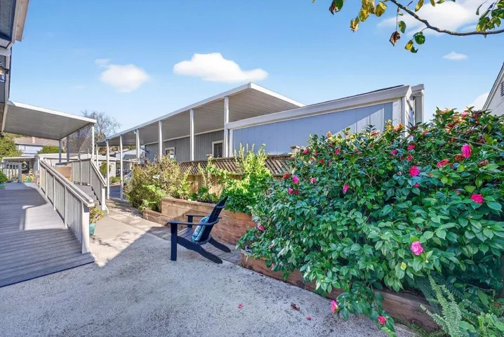 Welcome to 83 Leawood Street, a stunning 2-bedroom, 2-bath home offering 1,290 square feet of modern living in one of Aptos most desirable resident-owned 55+ communities. Built in 2021, this home features high-end finishes throughout and a thoughtfully designed, light-filled floor plan.The spacious primary suite is a true retreat, complete with a luxurious en suite bathroom and a large walk-in closet. A second bedroom and full bath provide comfortable space for guests, hobbies, or a home office.Exceptional outdoor living sets this home apart, with a large, accessible patio ideal for outdoor dining and entertaining, surrounded by beautifully designed gardening areas. A ramped walkway leads to the deck side of the home, while a stair lift on the parking side offers added convenience. A detached storage shed provides valuable extra storage.This highly sought-after community is known for its lower HOA fees, welcoming atmosphere, and outstanding amenities, including a clubhouse, pool, putting green, recreation room, and library. A rare opportunity to enjoy refined living, accessibility, and an exceptional lifestyle in the heart of Aptos. EZ Access to Beach Soon via NEW BRIDGE at end of Mar Vista! $590.73/Month Covers Reserves ($170), Home Owner ($273), Taxes ($130).