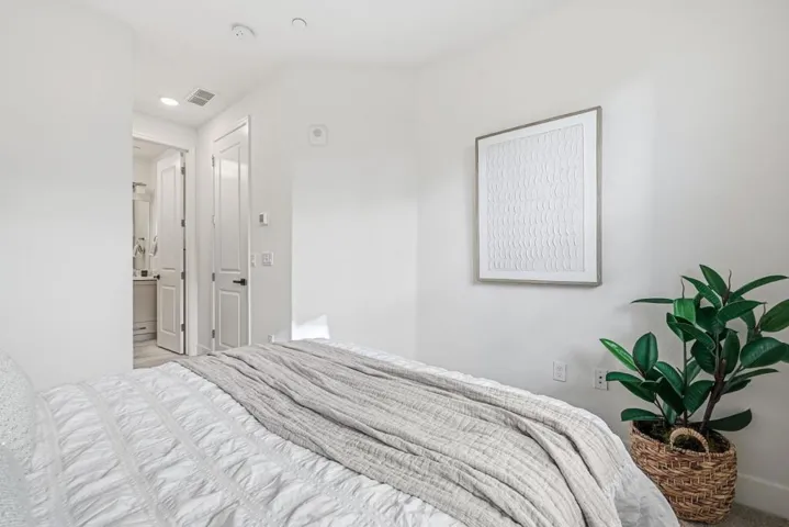 Discover upgraded modern luxury in this 2022-built, like-new contemporary townhome in Sunnyvale’s vibrant Elev8tion community! Spanning 3 beautiful levels, this move-in ready home features 3b3.5b across 1,718 sqft., including a private first-level bedroom suite ideal for guests or rental. The heart of the home is a stunning open-concept great room with soaring high ceilings, combining a chef’s dream kitchen with top-of-the-line appliances,& a spacious living and dining area bathed in natural light, opening to a charming covered deck. Upstairs, two luxurious bedroom suites include a serene primary retreat with bath and walk-in closet. Modern comfort is elevated with premium features, including a water filtration system, 3-zone HVAC, fresh air ventilation. The Elev8tion community enhances your lifestyle with shared amenities including a clubhouse and playground. Popular with Silicon Valley professionals, it is just minutes from restaurants, shops, Downtown Sunnyvale, and major tech employers including Apple, Google, Meta, Nvidia, Amazon & more, with easy access to Highways 101, 237, and Central Expressway. This townhome is not just a house, but a lifestyle statement in a thriving community. Don’t miss this Sunnyvale beauty!