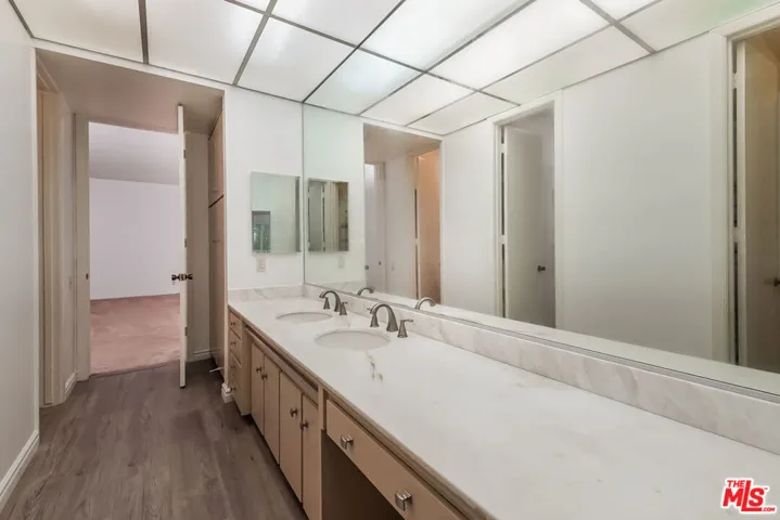 Light and bright single-level 2-bedroom condo with expansive layout in highly desirable Brentwood neighborhood. The over-sized living room with soaring ceiling & fireplace framed on either side by large windows providing fresh breeze and ample light. Large master bedroom with ensuite bathroom featuring, dual walk-in closets, 2 separate showers, and dual vanity with plenty of storage space. Central AC/heat, in unit washer and dryer, spacious balcony, and fully equipped kitchen. Convenience is key with two assigned side by side parking spaces in a gated garage. State-of-the-art building security system with key fob access. Just blocks away, you’ll find everything you need including Whole Foods, Ralph’s, finest cafe’s and dining. Easy access to the 405 and minutes away from UCLA.