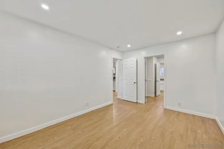 Enjoy effortless single-level, entry-level living in this beautifully updated La Jolla residence with no stairs, ideally located just blocks from premier shopping, dining, and a nearby park. Sleek quartz countertops and crisp white cabinetry throughout create a bright, modern aesthetic, complemented by luxury vinyl plank flooring for a clean, cohesive look. Elegant plantation shutters add timeless charm, while the oversized walk-in closet—spacious enough to serve as a home office, dressing room, or private retreat—offers exceptional versatility. A full-size washer and dryer add everyday convenience. With its highly desirable central location and easy, stair-free access, this home delivers comfort, style, and walkable La Jolla living at its best.