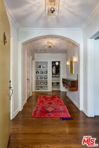 Nestled within one of Beachwood Canyon’s most coveted enclaves, this exquisite bungalow seamlessly blends timeless character with sophisticated designer finishes. A gracious entry welcomes you into a spacious living room with custom built-in bookcases and a classic fireplace, setting an inviting yet refined tone. The thoughtfully designed open floor plan connects the expansive kitchen and dining area, featuring abundant custom storage, a statement Classic refrigerator, stainless steel appliances, and elegant double French doors that open to a charming front deck, perfect for alfresco dining or intimate evening gatherings. The generous primary suite offers a serene sanctuary with a walk-in closet and double-door access to the lush outdoor space. The spa-like hall bath is beautifully appointed with a clawfoot soaking tub, walk-in shower, and marble-topped vanity. A well-proportioned second bedroom is ideal as a guest suite, sophisticated home office, or den, while the designer powder room provides a polished touch for entertaining. Rich hardwood floors flow throughout the residence, complemented by custom window treatments on every window and door. A substantial laundry room adds exceptional functionality and storage, while the attic accessible from the hall closet offers valuable additional space. Outdoors, discover a private backyard retreat featuring expansive, leveled decks designed for effortless entertaining or tranquil evenings under the stars. The garage provides versatile use as 2 car parking, a studio, or executive office and includes its own half bath. Additional highlights include a brand-new roof (December 2025), new HVAC 2024, a rare street-to-street lot, and no rear neighbors delivering remarkable privacy and serenity in one of Los Angeles’ most enchanting neighborhoods.