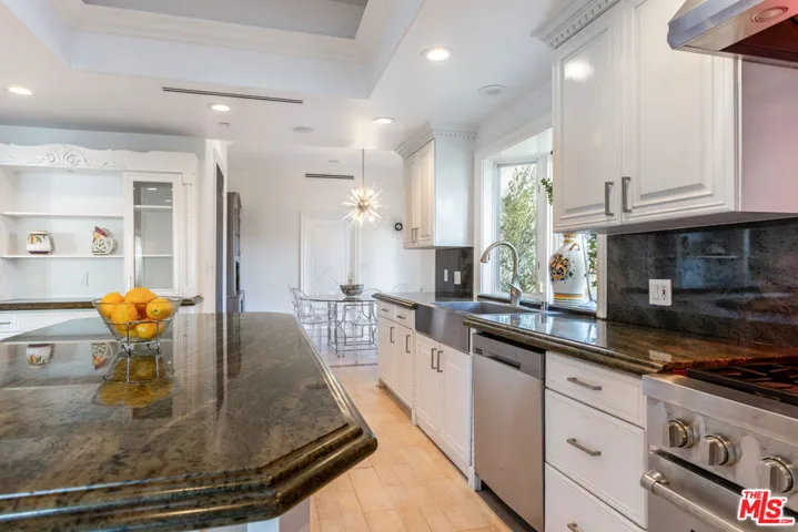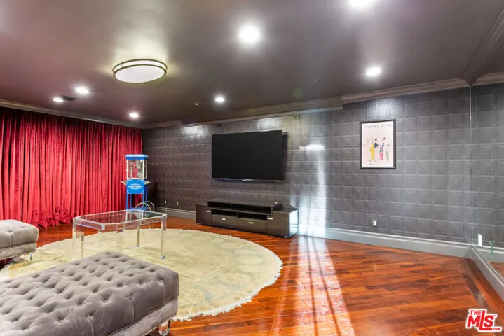 ** FULLY FURNISHED AS SEEN** 1491 Carla Ridge is a Santa Barbara Modern estate with breathtaking views, basketball court and recently reimagined with exquisite designer touches, including contemporary art, and all-new luxury furnishings throughout. The home delivers a resort-style experience. Set behind gates on a massive private estate, the property welcomes you with a grand motor court and immediately draws your eye to sweeping, jaw-dropping panoramic views showcased from nearly every room. Light-filled interiors flow effortlessly to multiple terraces and outdoor spaces, each capturing the unparalleled vistas that define this home. Resort-style amenities include a gated basketball/sport court, a private gym, library, billiard room, and numerous private lounge areas thoughtfully placed throughout the home perfect for a large family seeking both connection and separation. The grounds offer an abundance of usable flat outdoor space for dining, lounging, and entertaining, all framed by dramatic vistas from the backyard and every bedroom. The private primary suite offers unobstructed views over the backyard and the Los Angeles skyline, complete with a spacious dual walk-in closets and a marble spa bathroom. Additional guest suites also feature walk-in closets and beautifully appointed stone bathrooms. A separate lower level enhances both privacy and entertainment, offering two bedrooms, a kitchenette, and a dedicated movie theater ideal for guests, staff, teens, or family living. Mature landscaping and strategic design ensure the property enjoys total privacy while still embracing its incredible scale. A rare property with unmatched views, 1491 Carla Ridge stands as one of the most exciting rental offerings in Beverly Hills.