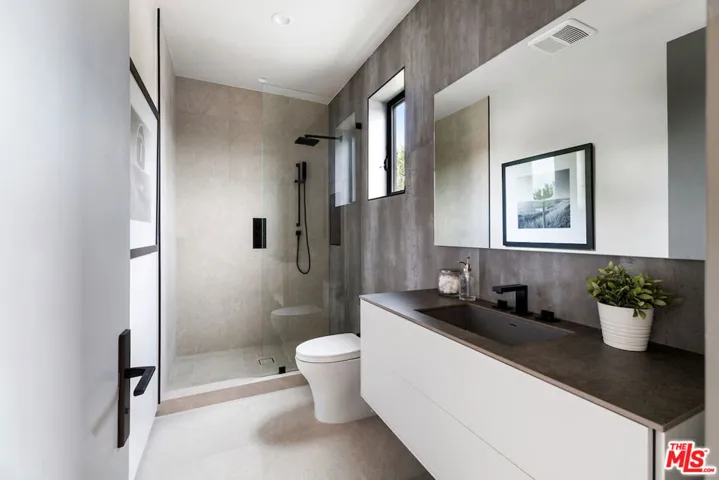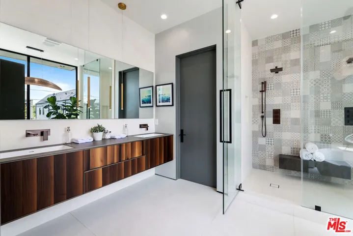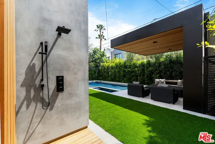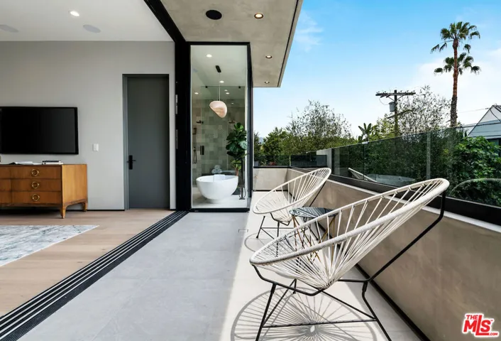 Gated architectural residence designed for the discerning buyer. Enter through a grand pivot door into an inviting home thoughtfully finished with rich wood elements and expansive second-floor and rooftop decks totaling approximately 1,500 additional square feet, offering sweeping views of the Los Angeles skyline and Hollywood Hills. The interior features white oak floors, Spanish tile accents, custom imported Italian vanities, and a chef’s kitchen with an oversized island and counter seating that opens seamlessly to the family room and out to the pool, spa, cabana, and deck. The dining room opens to a private lounge deck, while a full suite on the main levelideal as an office or guest suitealso enjoys deck access.The primary suite showcases a striking white oak accent wall and a spa-like bath with a freestanding soaking tub and a tiled shower with dual shower heads. Two additional en-suite bedrooms feature private balconies. Additional features include crestron home automation, alarm and security camera systems, and mature. Centrally located in Beverly Grove, just minutes from Beverly Hills and some of the city’s best restaurants and shopping!