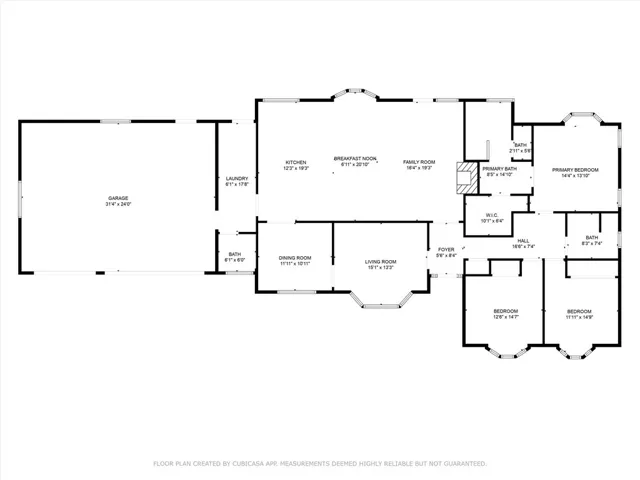 The private primary suite offers a spacious retreat, featuring a walk-in closet and a fully updated en-suite bathroom with a soaking tub, walk-in shower, and dual-sink vanity with modern finishes. Two additional bedrooms include bay windows and large closets, while the updated hall bathroom features a tub-shower combination and a newer dual-sink vanity with a gorgeous quartz countertop. A conveniently located half bath off the kitchen, and a separate laundry room which offers direct access to the backyard and garage.