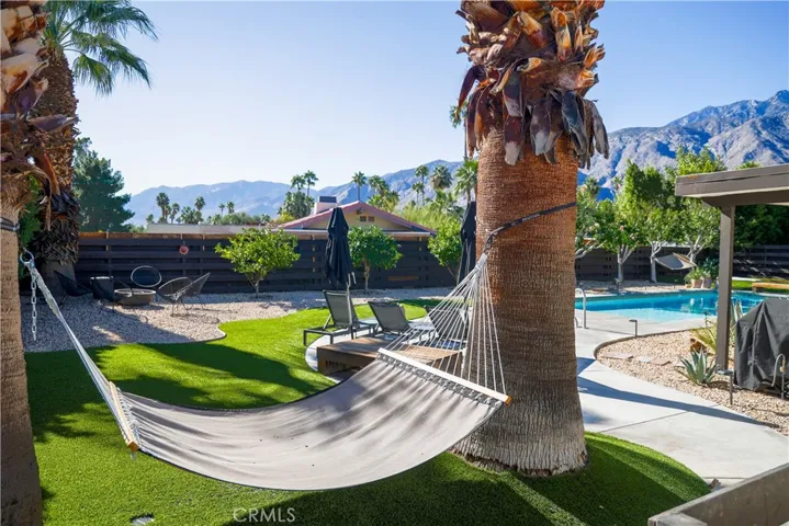 Owned solar enhances efficiency and long-term value. Outdoors, lush yet low-maintenance desert landscaping surrounds a spacious backyard oasis with a sparkling pool and sweeping mountain views—an irresistible draw for both owners and guests. Offered furnished, this exceptional home provides immediate enjoyment and income potential, delivering refined modern desert living at its finest.