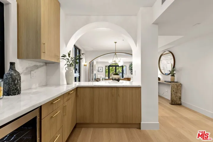 Halston House is a bespoke collection of eight condominium residences right in the heart of Brentwood. All of the residences comprise three bedrooms, a family room and 2.5 bathrooms. Elegantly appointed living spaces include gracious living rooms with wide-plank oak wood flooring, fireplaces, large windows and French doors that allow natural light to pour in. The family rooms offer built-in cabinetry, creating an ideal setting for a media room or office. Gourmet kitchens feature Italian Dolomite countertops with full-height backsplash, custom oak cabinetry, stainless steel appliances, glass-front refrigerators and wine refrigerators. The serene primary bedrooms are complemented by spa-like bathrooms with hand laid herringbone limestone, dual sinks, a separate soaking tub, a walk-in shower, and expansive custom-designed walk-in closets. Additional features include built-in speakers, dedicated power for EV chargers, private package delivery lockers in the lobby and additional large private storage in a locked storage room. Halston House was thoughtfully designed with elegance and privacy as a guiding principle.