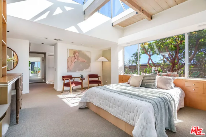 Stunning ocean views from this move-in ready single-story residence in the highly desirable Marquez Knolls. Incredible opportunity – the lowest priced home to come to market on Charmel in over 10 years. Mid-Century architectural features, walls of glass, luxury built-ins, skylights and unreal mountain and ocean views define this home. The spacious living room with large glass doors, clerestory windows, wood-beamed ceiling and chic fireplace opens to a dining area and beautiful kitchen on one side. On the other side, the living room opens to an inviting tv lounge that could be converted back to a third bedroom if necessary. The bedrooms are ensuite, both with remodeled bathrooms and ample closets, including a huge primary closet with space to also serve as a private city view office. The home is light and bright throughout and feels like a special retreat with stone patio and green garden. Easy parking in the area and a direct-access two-car garage. Great local public and private schools. Ideal for a full-time residence or gorgeous pied-a-terre.