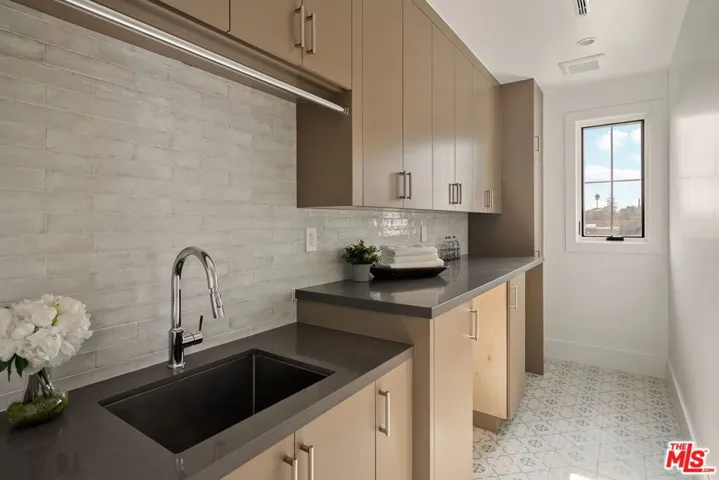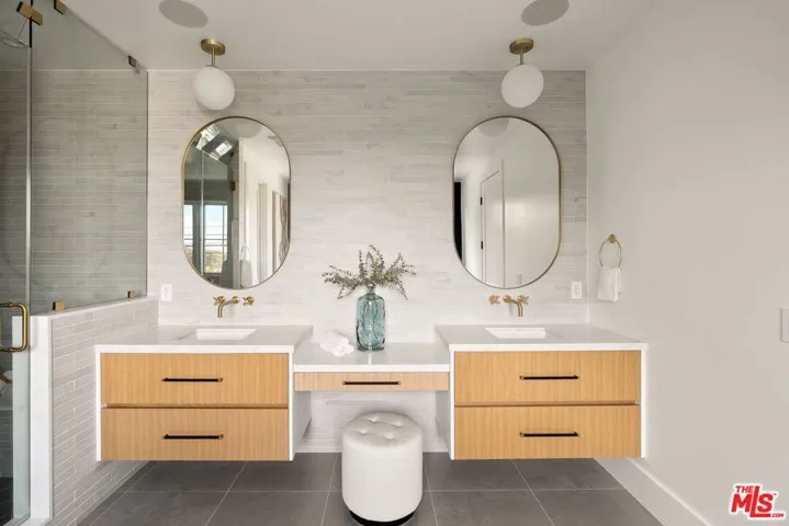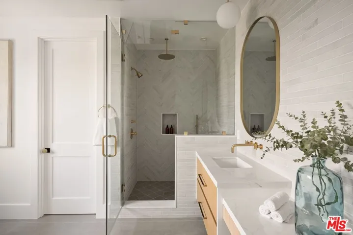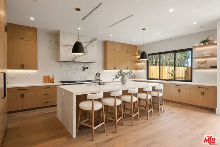 A sophisticated interpretation of modern farmhouse design, this newly constructed residence by DiNali Construction is defined by its impressive scale, refined craftsmanship, and bespoke detailing throughout. Spanning approximately 3,950 square feet, the home offers 5 bedrooms and 5.5 bathrooms, thoughtfully designed to accommodate both elevated entertaining and effortless everyday living. Upon entry, the residence reveals custom architectural accents, curated finishes, and intentional design elements that distinguish every space. Expansive living and dining areas flow seamlessly into a stunning chef’s kitchen, appointed with top-of-the-line appliances, custom cabinetry, and a grand center island that serves as the heart of the home – ideal for hosting gatherings or casual family meals. Designed for seamless indoor-outdoor living, the home features multiple entertaining areas, including upper and lower-level patios that extend the living experience outdoors. The private backyard is highlighted by a contemporary pool with a dramatic waterfall feature, creating a serene yet striking focal point, while a large covered patio provides an ideal setting for al fresco dining and relaxed outdoor living. The primary suite serves as a tranquil retreat, complete with a spa-inspired bathroom and a generous walk-in closet. Each additional bedroom is generously scaled and includes its own en-suite bathroom, ensuring comfort and privacy throughout. Additional highlights include a spacious, well-appointed laundry room, smart home capabilities, security infrastructure, and thoughtfully integrated custom storage solutions. Meticulously crafted with DiNali Construction’s signature attention to detail, 1742 Preuss Rd offers a lifestyle defined by comfort, elegance, and modern functionality, ideally situated in the desirable Crestview neighborhood, just moments from Beverlywood, Culver City, Beverly Hills, and the best of Los Angeles.
