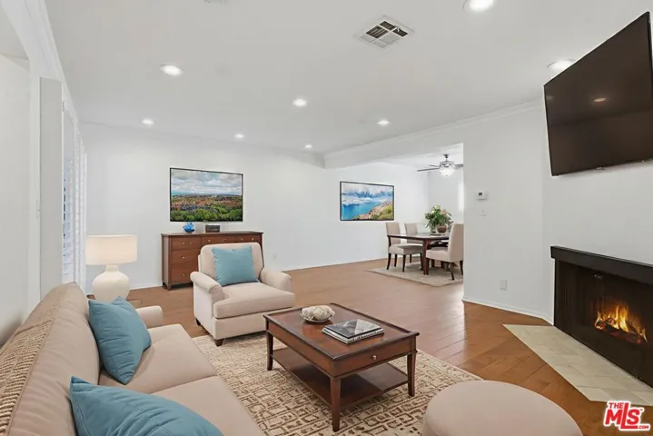 Welcome to this rare 3 BR, 2.5BA, end-unit, townhouse in prime Tarzana Gardens, boasting hardwood floors throughout, attached private 2-car garage, laundry room, recessed lighting throughout, living room with fireplace, tons of natural light, plantation shutters throughout, lots of storage, stainless steel appliances, community pool and tennis court, and much more. Enter in to the large living room featuring hardwood floors, fireplace and an open floorplan, flowing into the large dining area and chef’s kitchen. The kitchen features tile floors, granite countertops and all stainless steel appliances. Wide French door refrigerator. Slide-in gas range with venter hood, and stainless dishwasher, as well as tons of storage space. Downstairs find your private attached 2 car garage with stairs leading directly to the kitchen. As well as a Utility/Laundry room with full size washer, dryer, and water heater. All 3 bedrooms located upstairs. Spacious primary suite looking over the courtyard with plantation shutters. Primary bathroom with double vanity and glass shower door. Two more guest rooms upstairs and a large guest bathroom with tub and shower. This coveted and well maintained community features gorgeously manicured landscaping, a sparkling pool and a full size tennis court for the ultimate mix of relaxation and play. Don’t miss out on this rare opportunity to own a 3 BR unit in this fabulous community.
