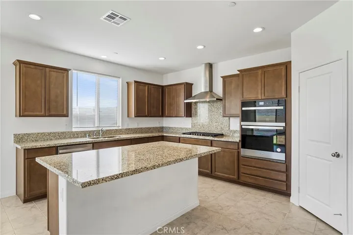Fully paid-off solar panels enhance this beautiful and spacious 5- bedroom home with an additional den, ideally located within the highly desirable, master-planned Alberhill Ranch community. Step into a large, inviting living room that flows seamlessly into an oversized kitchen—perfect for entertaining and everyday living. The main floor offers a convenient bedroom and full bath, ideal for guests or multigenerational living.