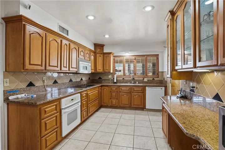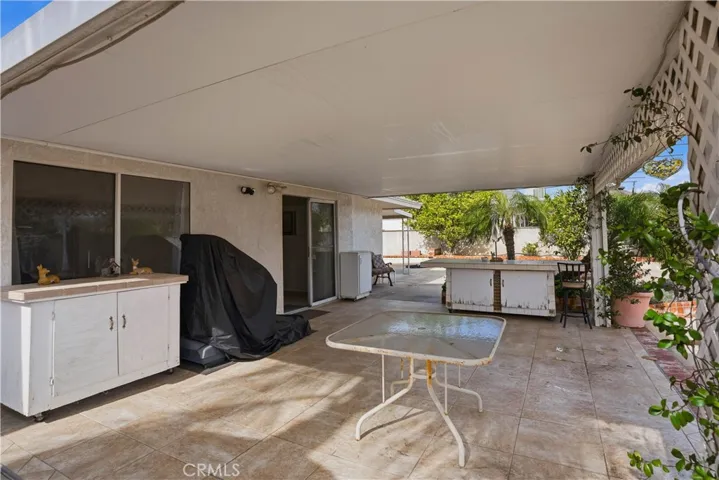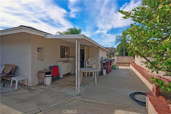 Welcome to this beautifully maintained home located in a desirable Menifee 55+ community, situated on a spacious corner lot. This property features a large lot with RV parking secured by a wrought iron metal gate and a stunning palm tree–lined fence line that creates exceptional curb appeal. The backyard is designed for entertaining with extensive hardscape and custom brickwork, complemented by a large covered patio perfect for relaxing or hosting gatherings.The kitchen was previously remodeled and offers granite countertops, ample cabinetry, and generous storage space. Both bathrooms have been upgraded with tiled finishes and walk-in showers. Additional highlights include indoor laundry, abundant storage throughout, an enclosed workshop or craft room, and a bright sunroom that opens directly to the backyard.This home offers comfort, functionality, and outdoor space rarely found in the community—ideal for enjoying the active 55+ lifestyle.