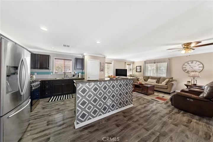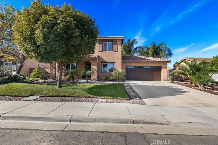 Stunning turnkey home nestled in the heart of Menifee with LOW Taxes & HOA. Step outside into your private, shaded, generously sized backyard which has ample space for entertaining, gardening and includes 13 fruit trees! Inside you will find 2401 SQFT of living space, 4BD/3BA home, plus an option to replace downstairs office/den to a 5BD by adding a closet. This home has been lovingly maintained, including fresh paint, landscaping, and updated throughout offering style and value. Featuring a spacious open concept layout, enjoy your living room, family room, dining area and kitchen nestled together for comfort and convenience. Imagine preparing your favorite meals in your well-appointed kitchen, with granite counter tops, classy cabinets, newer stainless-steel oven & microwave perfect for friends and family. Upstairs features a spacious primary suite with a large walk-in-closet, separate bath and shower and dual sinks. There are 3 additional bedrooms for guests and family plus another full-sized bathroom. A must-see property that truly stands out!
