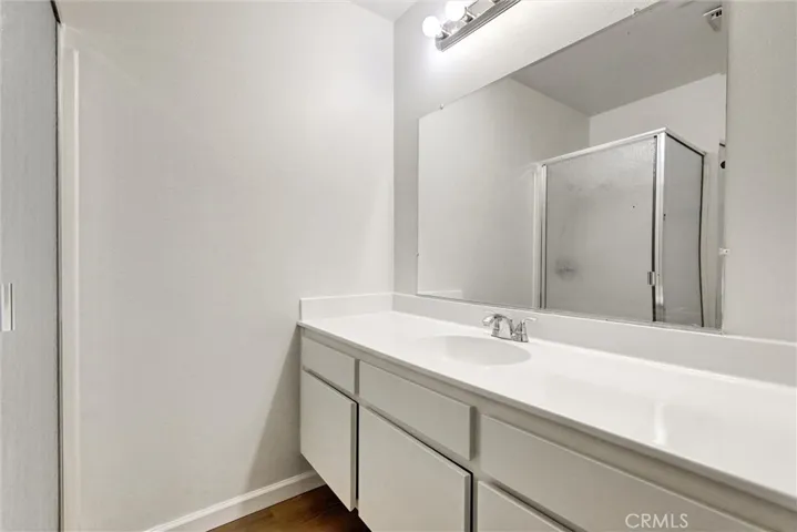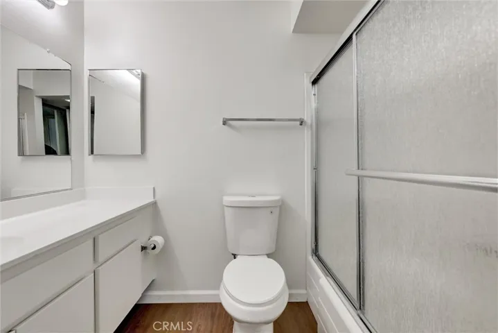 The interior has been completely refreshed with brand-new paint, wood laminate flooring throughout (no carpet), and new baseboards, creating a clean, modern aesthetic. Both bathrooms have been stylishly updated with newly finished counters, sinks, and sleek shower glass. Additional upgrades include all-new window treatments and screens, ensuring comfort and move-in readiness.