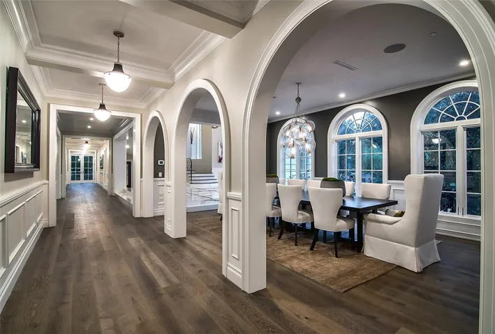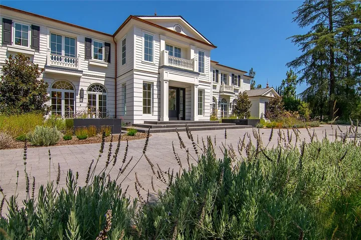 This exceptional custom estate presents a sophisticated French Country Modern sensibility that is both architectural and enduring. Thoughtfully designed and beautifully proportioned, the home offers a sense of quiet luxury rooted in quality and craftsmanship rather than trend. Upon entry, a dramatic foyer and adjoining sitting room create an exceptional arrival experience, highlighted by an illuminated bar with views across the pool. A gourmet kitchen opens seamlessly to an expansive family room, ideal for everyday living and entertaining. The layout continues with a game room with wet bar, private movie theater, custom paneled office, and a striking two-story gym filled with natural light, complete with a sauna and massage room. A discreet PRIVATE ELEVATOR serves the home, enhancing comfort across levels. The primary suite is a serene retreat featuring an all-stone bath, steam shower, sauna, and generous dual custom closets. Throughout the home, high-quality finishes, designer lighting, blackout window treatments, and custom closet systems reflect a thoughtful approach to luxury living. Recent enhancements include a whole-house water filtration system, upgraded HVAC, comprehensive security with cameras, and backup generators serving both the main residence and guest house. The grounds unfold like a private countryside escape, set across approximately 2.34 ACRES SPANNING TWO PARCELS, with mature landscaping, open skies, and a PERSONAL VINEYARD THAT ACTIVELY PRODUCES WINE, lending the property a true estate character. Outdoor amenities include an outdoor living room with fireplace, indoor-outdoor bar, pizza oven, BBQ center, fire pit, zero-edge pool with Baja entry, spa, and circular driveway with entry fountains. Music flows throughout the home via a high-quality sound system, complemented by an ultra-modern RECORDING STUDIO. A full GUEST HOUSE with second kitchen and private driveway offers exceptional flexibility, along with an additional seven-car garage. Square footage includes both the main residence and guest house. Ownership also includes access to the Hidden Hills lifestyle, offering guard-gated privacy, on-site security, miles of hiking and equestrian trails, riding arenas, tennis and pickleball courts, a community pool, recreation center, theater, and a strong sense of community within a private, pastoral setting. This one-of-a-kind Hidden Hills estate offers a lifestyle of understated luxury, privacy, and enduring elegance.