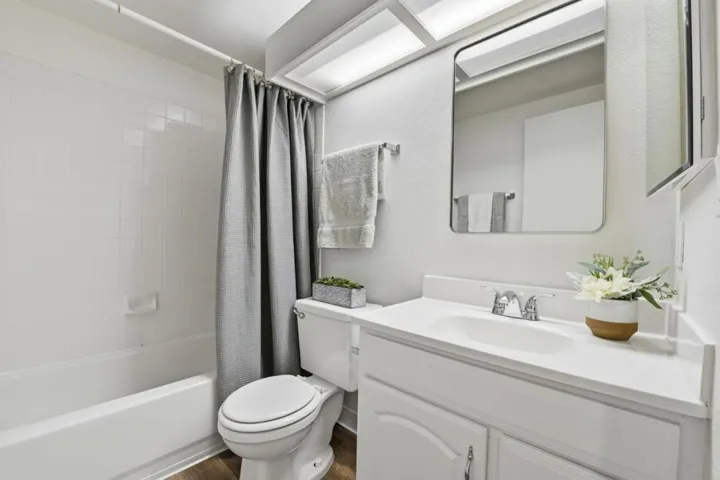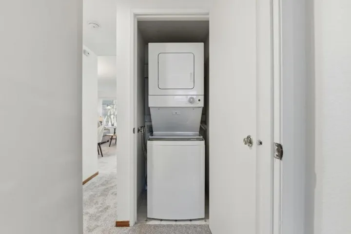 Step into this beautifully refreshed 2-bedroom, 1.5-bath home in a charming Sunnyvale community, just moments from vibrant shopping, dining, tech, and all major freeways. Warm natural light pours in through new windows and a new contemporary light fixture, complemented by all new flooring throughout and fresh paint for an airy, modern feel from the moment you walk in. The stylishly updated kitchen boasts a new range and hood, newer refrigerator, sleek new countertops, and new sink perfect for everyday cooking or easy entertaining, with cabinet colors that harmonize beautifully with the seamless flow of the new flooring. Thoughtful upgrades abound with a new front door, new sliding glass door, new blinds, newer heater, and newer bathroom vanities, offering comfort and peace of mind. Open the slider to a cozy private patio and enjoy the convenience of your own private storage, ideal for bikes, gear, or seasonal items, plus a newer indoor washer and dryer for added ease. Covered carport parking for one vehicle with storage cabinets, and a second permitted parking space. Low HOA dues and a move-in ready interior, this home offers an inviting blend of convenience, comfort, and lifestyle that makes Sunnyvale living so special.