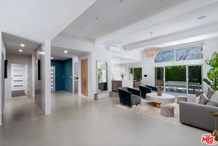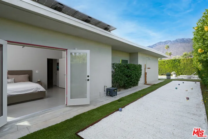 A rare 1949 architectural estate reimagined for modern Palm Springs living, 2280 Paseo Roseta pairs mid-century lineage with energy-efficient contemporary luxury on a grand, private lot in the heart of Sunrise Park. This is a true Palm Springs residence with scale, elegance, and an indoor/outdoor flow designed for effortless desert living. Set behind sculptural landscaping and framed by dramatic mountain views, the home unfolds with over 3,200 square feet of refined interiors, wide gallery-like living spaces with walls of glass, warm natural textures, and expansive sightlines that capture the serenity of the pool and gardens. The great room is the soul of the home: sunlit, spacious, and anchored by architectural details that blend 1940s character with today’s design sensibilities. Multiple seating zones, high ceilings, and seamless access to the outdoors make it a true entertainer’s setting. The kitchen is an elevated retreat of its own with generous prep spaces, luxury appliances, custom cabinetry, and an open layout that allows hosting and cooking to coexist effortlessly. Four bedrooms, each thoughtfully separated for privacy, offer timeless comfort and retreat-like proportions. The primary suite is a sanctuary, with a spa-inspired bath, direct access to the pool terrace, and morning light that feels like a still from a design magazine. Outside, the grounds read like a private resort: a sparkling pool set against mountain silhouettes, private spa, multiple lounging and dining zones, mature palms, and a sense of calm that’s increasingly rare in central Palm Springs. The lot size amplifies the experience with more space, more privacy and more sky. Located moments from downtown, yet tucked into one of Sunrise Park’s most desirable pockets, Paseo Roseta offers the best of Palm Springs living: architectural heritage, modern design, and a luxury-level experience that transcends the typical mid-century category. This is the kind of home people hope to find when they come to Palm Springs…spacious, soulful, stylish, and unforgettable. Upgrades include: upgraded electrical panels and owned solar, high-tech alarm system with cameras and LG Smart home automation. Additionally, this home is eligible to be a short-term rental for supplemental income.