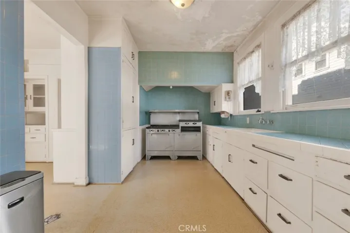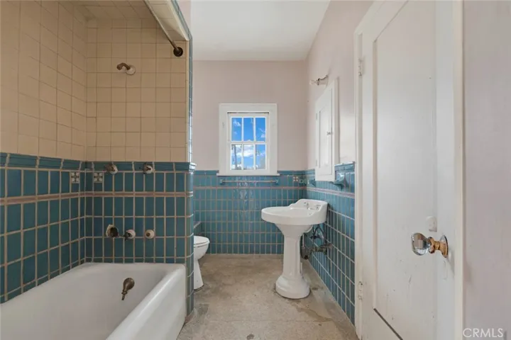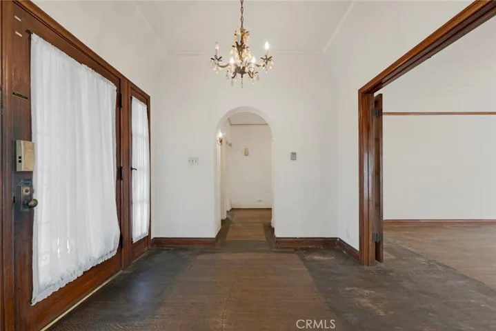 This grand Spanish Colonial Revival in coveted Country Club Park awaits a true visionary ready to restore it to its former splendor. Designed by notable 1920s female architect Anna C. Geck, who was responsible for many similar residences throughout Los Angeles and Orange Counties, the home reflects the elegance and craftsmanship of its era. Much of the original character remains intact, including vintage tile surrounding the fireplace, graceful arched windows, original hardwood floors, and many period light fixtures. The main level offers expansive formal living and dining rooms, a front parlor that may have originally served as two bedrooms, a kitchen with adjacent breakfast room, and a small bedroom and bath that once functioned as maid’s quarters. Upstairs, four generously sized bedrooms are served by two classic Jack-and-Jill bathrooms. At the rear of the property sits a detached one-bedroom, one-bath guest house of approximately 658 square feet, along with a three-car garage. Located within a Historic Preservation Overlay Zone, this property requires substantial renovation to its systems and structure, presenting a rare and meaningful opportunity to thoughtfully revive a significant architectural gem.