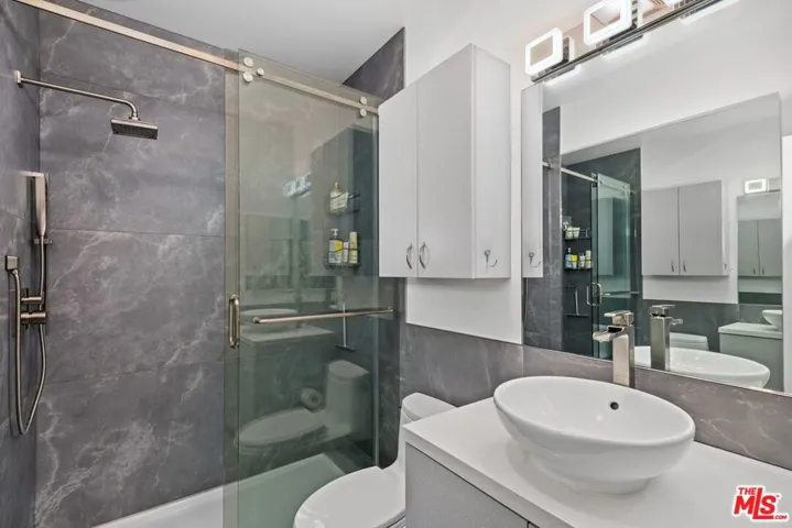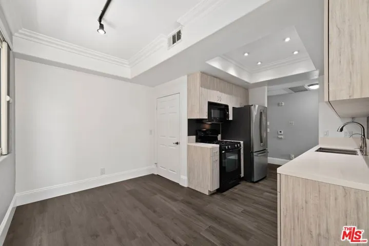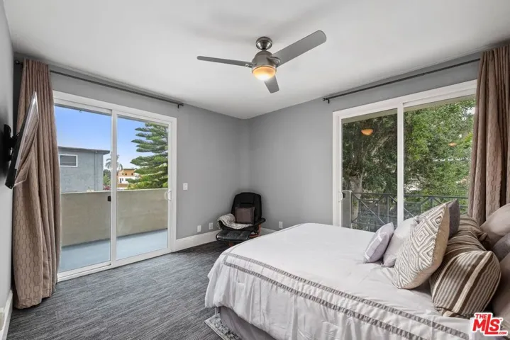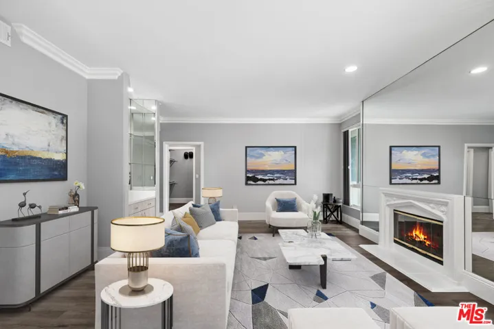 Elegant and spacious, this move-in-ready 2nd floor 2-bedroom, 2-bathroom contemporary condo has been fully remodeled with a designer kitchen and luxurious bathrooms. This bright front corner unit, featuring only one shared wall, is filled with natural light. The open living space boasts new custom flooring, high ceilings, and a fully equipped kitchen with custom soft-close cabinetry, a dishwasher, refrigerator, microwave, range/oven, reverse osmosis water system, water heater, and in-unit washer/dryer. Enjoy brand-new central air conditioning and heating for year-round comfort. The expansive primary bedroom features two sets of sliding glass doors open to a generous balcony, perfect for outdoor lounging. A spacious walk-in closet and ample storage throughout the unit provide convenience and organization. The sunlit living room offers a cozy fireplace and access to a third balcony, enhancing indoor-outdoor living. Designed for privacy, the bedrooms are on opposite ends of the unit. This beautifully maintained building consists of just 11 units, offering low $400 HOA fees, abundant guest parking, and a prime central location near The Grove, Farmers Market, Beverly Hills, beaches, and major freeways.
