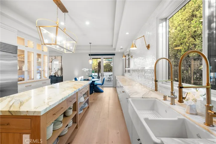Welcome home to this stylish and elegant home in the guard-gated community of The Ridge in the heart of Calabasas. Situated near the end of a cul-de-sac, this extensively renovated home has been updated to the highest standards – with no expense spared – and is perfectly designed to enjoy indoor-outdoor living at its best. As you enter the two-story foyer, you’ll notice the gorgeous large slab limestone floors, an abundance of natural light, and beautifully appointed formal living and dining rooms on either side. Just beyond, the spacious family room with fireplace looks out over the entertainer’s backyard and flows into the show-stopping chef’s kitchen, featuring striking Calcutta Borghini marble counters and center island, Wolf appliances, custom solid flat sawn white oak cabinetry, and Zellige tiles. The lower level also includes an office overlooking the backyard, a bedroom with en-suite bath, and a fabulous powder room with a backlit onyx sink. The beautiful limestone extends upstairs, with 10″ wide European white oak wood flooring covering the remainder of the residence. Once upstairs, you find a generous loft/family room and a balcony with sweeping views. The private primary suite boasts stunning views, a two-sided fireplace, and a luxurious spa-like bath with a soaking tub, large walk-in shower, and dual custom closets – all crafted with timeless, high-end materials. The refined details extend to the secondary bathrooms, where you’ll also find solid white oak cabinets, hand-made and cut terra cotta and marble flooring, Zellige tiles, and premium fixtures. The backyard oasis features a pool and spa framed by beautiful hedges and includes a fire-pit, a bbq area with a pizza oven, a cozy dining area, and lush, sophisticated landscaping – perfect for both relaxing and entertaining. Finally, this home is outfitted with a tankless water heater, premium audio, and a comprehensive video security system.