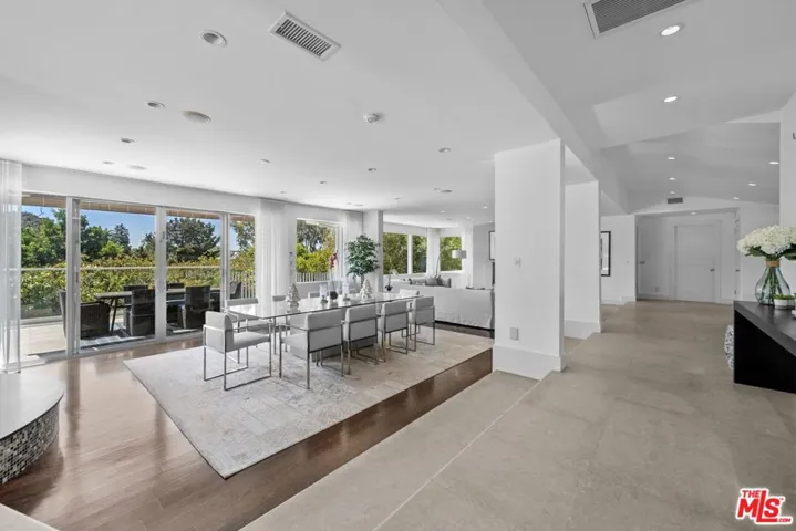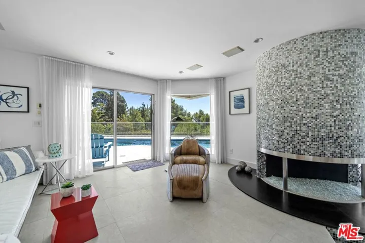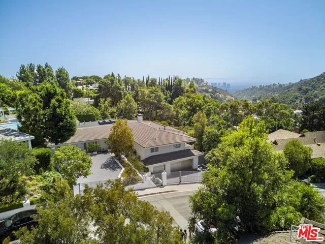 This elegant, single-level contemporary home, located minutes from Rodeo Drive, is gated and set back from the street, offering both privacy and security. The open floor plan effortlessly merges the living, dining, and family areas, creating a perfect space for both entertainment and quiet relaxation. Walls of glass open to a serene outdoor oasis, featuring a sparkling pool, spa, and picturesque views, seamlessly blending indoor and outdoor living. The chef’s kitchen is equipped with state-of-the-art stainless-steel appliances and features a large center island, creating an ideal space for cooking and gathering. The primary suite offers a private retreat with its own office area, and a spacious spa-style bathroom complete with double sinks, a vanity, and a steam shower. The lower level features a gym and a two-car garage, while the gated driveway offers ample additional parking.