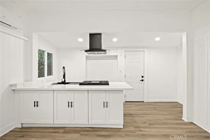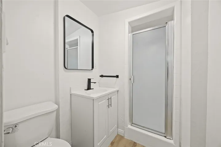 The open-concept living area flows effortlessly into a stunning kitchen featuring Quartz Calacatta countertops, a new sink, stove, oven, and hood—designed for both everyday living and entertaining. The bathroom has been tastefully remodeled with a new vanity and sleek glass shower enclosure, creating a clean, spa-inspired feel.
