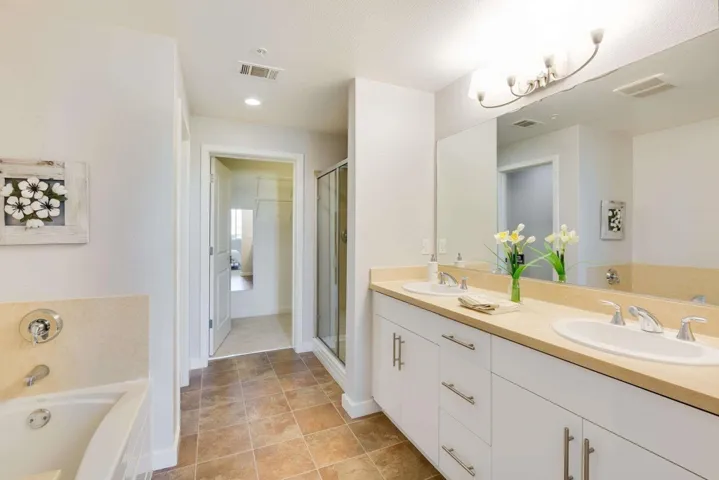 Welcome to this luxurious top-floor residence that truly stands out. This must-see home features an open floor plan with a private balcony offering breathtaking 180-degree views and an abundance of natural light. High ceilings, engineered hardwood flooring, double-pane windows, and LED recessed lighting create a bright and modern living space. The beautifully appointed kitchen boasts granite countertops with a breakfast bar, ample cabinet space, and elegant drop down lights—perfect for both everyday living and entertaining. All bedrooms feature designer carpet, including the spacious primary suite with two walk-in closets, dual vanities, a separate soaking tub and shower. In-unit laundry room, two assigned parking spaces, and bonus secure storage. The community offers resort-style amenities including a heated pool, greenbelt, and tot-lot. Located within the award-winning school district of Hirsch Elementary, Horner Middle, and Irvington High. Conveniently close to Lake Elizabeth Park, BART stations (Fremont & Warm Springs), Costco, Starbucks, Ohlone College, Pacific Commons, and major tech corridors, with easy access to Highways 680/880. This exceptional home combines luxury, comfort, and an unbeatable location—don’t miss this incredible opportunity!