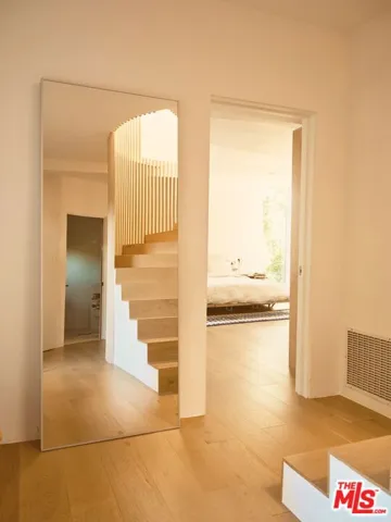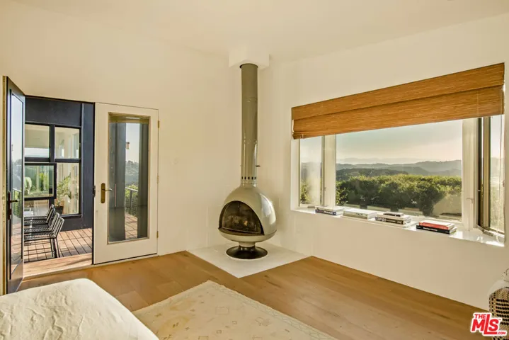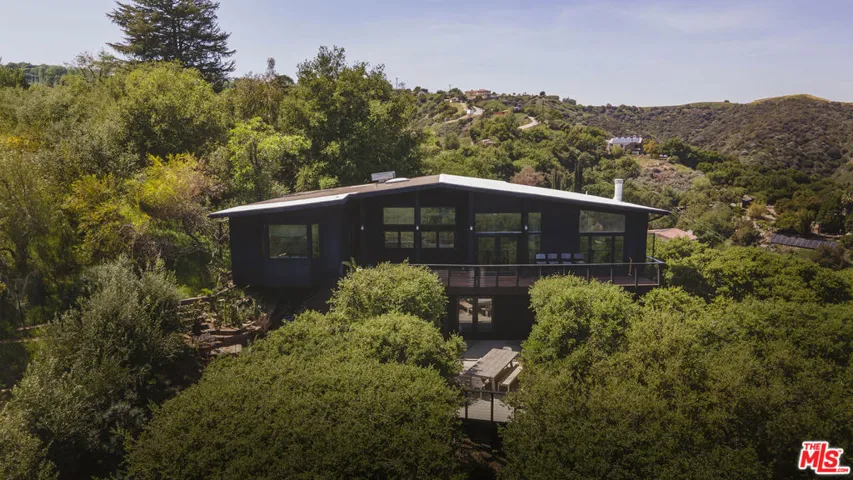 Cereza is an architecturally distinctive Topanga retreat and a true creative sanctuary. Blending rustic nature and design minimalism, the home is filled with shifting natural light from morning through dusk, creating a warm, organic atmosphere throughout. Offering breathtaking, unobstructed views, this pristine 4-bedroom, 3-bath residence is a rare opportunity to live on the coveted ridgeline that merges Topanga’s creative spirit with the modern luxury of Calabasas. A sculptural staircase anchors the home, serving as a striking architectural moment that defines the space. The upper level features a chef’s kitchen with outdoor counter seating that opens seamlessly to an airy living room and dual panoramic balconies. A private one-bedroom suite on this level includes a retro fireplace and sweeping views that make sunrise and sunset their own unique ritual. Downstairs, a second suite and two additional bedrooms connect directly to an expansive deck surrounded by lush landscaping and a tranquil Japanese soaking tub. Multiple outdoor lounge areas are positioned to take full advantage of the canyon setting ideal for entertaining, reflecting, or simply being present in nature. A detached cabin studio provides additional privacy and flexibility, complete with a built-in work area and loft bed for a guest. A dedicated yoga platform and suspension net allow you to float amongst the oaks, creating calm and connection with nature. Completing the property, a two-car garage currently serving as a ceramic studio and Hi-Fi movie lounge with adjoining gym adds versatility to this thoughtfully designed residence. Where design, nature, and intention converge. Welcome to Cereza.