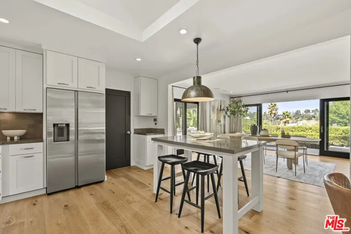 This absolutely beautiful, light filled, one-level home sits just behind the coveted Laurel Hills neighborhood and Mulholland Tennis Club. The location features the wide streets that everyone loves and easy access via Mulholland and Laurel Canyon. It’s perfectly suited above the road with privacy and lush canyon views. Enter through an expansive gated courtyard that takes you to the covered front door and formal entry…. that entry flows into the stunning open plan interior with wood-burning fireplace and walls of glass. The home underwent a comprehensive renovation and features wonderful finishes inside & out. At the driveway you’re greeted by a solid wood carriage house garage door and inside you have wide plank flooring, wood exterior doors, dramatic skylights, paneled walls and thoughtful built-ins. A perfectly appointed chef’s kitchen with moveable island & seating is where everyone will want to hang out with the host. The inviting outdoor areas connect seamlessly with the kitchen & great room…with a pergola covered lounge area and an additional al fresco dining area. The yard has so much room and so many possibilities and it encircles the house…add a pool, lawns, vegetable garden or more. There’s room for it all. Direct access from the garage with security system, video cameras and it’s wired for music with built-in speakers. Just minutes from either Studio City or the Sunset Strip. Currently configured as 2 bedrooms. 3rd bedroom was opened up to expand the main living area.
