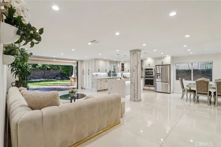 Stunning. Elegant. Immaculate. These words perfectly capture this newly remodeled Tarzana masterpiece, where luxury and craftsmanship converge. Enter through custom wrought-iron doors and step into an extraordinary residence showcasing over 2,600 square feet of impeccably designed living space with five bedrooms and four beautifully appointed bathrooms. The entertainer’s open floor plan is highlighted by a dramatic living room with soaring ceilings, seamlessly flowing into the dining area and a one-of-a-kind custom chef’s kitchen. Featuring natural stone countertops, a generous center island, premium built-in stainless steel appliances, and bespoke finishes, this kitchen is both functional and striking. A cozy family room completes the main living space, perfect for everyday comfort or hosting guests. A grand marble staircase with custom iron railings leads to the luxurious primary suite, a true work of art. This private retreat features custom Italian paint, designer ceilings, a spacious walk-in closet with custom built-ins, and a en-suite bathroom with dual vanities and an oversized shower. Each additional bedroom is thoughtfully designed with unique, tasteful details and exceptional craftsmanship throughout. Step outside to a resort-style tropical backyard, ideal for entertaining. Enjoy a covered patio, built-in BBQ, gas fire pit, expansive grassy area, and a tranquil pond with a cascading waterfall—your own private oasis. Additional highlights include updated plumbing and electrical systems, custom interior doors, dual A/C units, a downstairs bedroom with a full bath, and countless premium upgrades throughout. The seller has invested hundreds of thousands of dollars into this home, and it is evident in every exquisite detail. A rare opportunity to own a truly exceptional luxury residence in Tarzana.