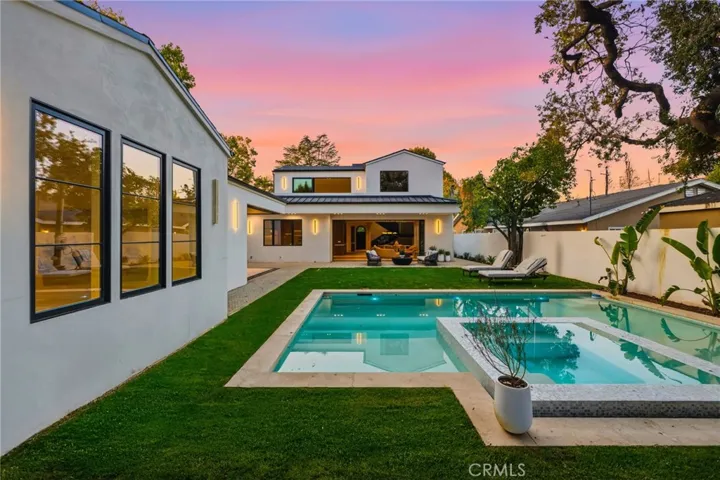 Introducing The Arch House, a brand-new modern estate that embodies the perfect balance of architectural sophistication and organic warmth. Designed with intention and artistry, this residence celebrates natural materials, flowing forms, and an effortless connection between indoor and outdoor living. Step inside to discover interiors wrapped in rich wood finishes, rounded architectural edges, and sun-drenched open spaces that exude calm and elegance. Every detail has been thoughtfully curated to create a sanctuary of style and serenity. Large sliding glass walls open to a private backyard retreat, centered around a magnificent heritage oak tree the heart of the property. Here, you’ll find a sparkling pool and spa, built-in BBQ center, and multiple lounging areas that invite relaxation and entertaining year-round. A detached 1-bedroom, 1-bath ADU complements the main residence, offering flexibility for guests, extended family, or a private creative studio. Blending timeless natural beauty with contemporary design, The Arch House is more than a home it’s a living work of art where form, function, and nature exist in perfect harmony. Luxury living close to fine dining, shops and more.