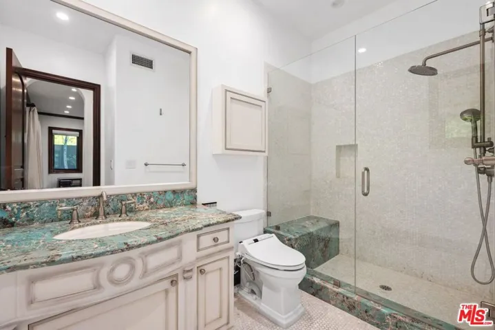 Spectacular and elegant 4,853 sq/ft home featuring 6 BR’s, 5.5 BA’s, a gym, a gourmet kitchen with Wolf and Sub-Zero Appliances, a generous formal dining room, large living room, and family room with Fleetwood doors opening out to a resort style private yard with a pool and heated covered patio. The yard has multiple seating areas, a fire pit, and an outdoor kitchen with BBQ. The large primary suite features a huge walk-in closet along with a gorgeous bathroom with spa tub, bidet, steam shower. Other features include a wet bar, double-sided fireplace, high ceilings, sky lights, wood and onyx floors, security cameras, 2 car attached garage, and multiple zone HVAC. LOCATED IN THE WARNER AVENUE SCHOOL DISTRICT. It is truly a remarkable home and property.