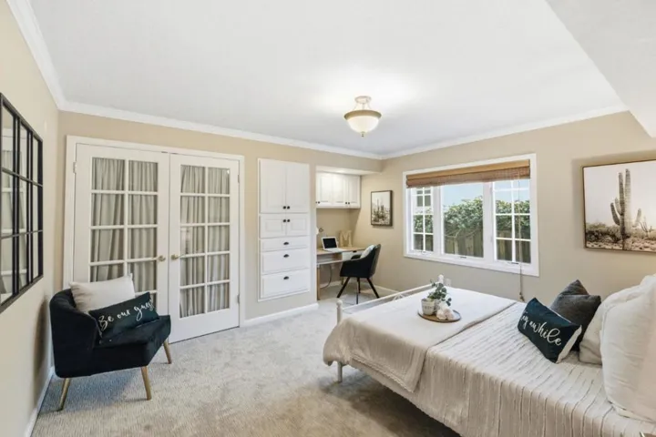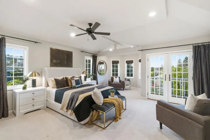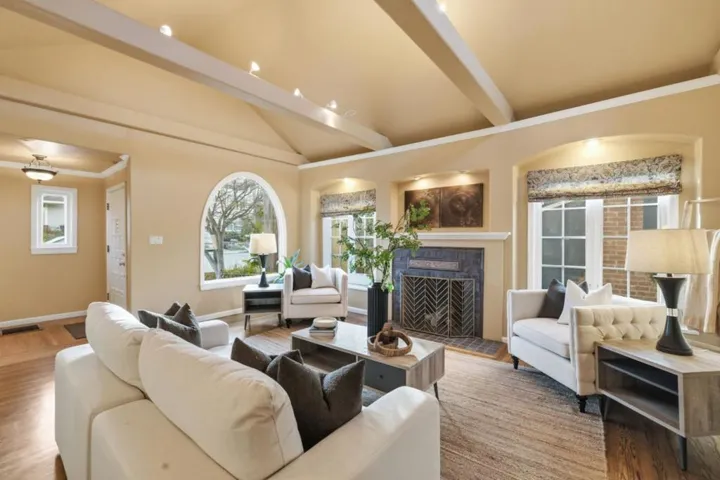 A property like this doesnt come to market often! Originally built in 1936, this Spanish-style beauty blends timeless character with thoughtful modern improvements. The spacious residence offers comfortable living spaces, high ceilings, and beautiful original details. The formal living room features a period-style tile fireplace, a large arched window with garden views, and space for a grand piano. A formal dining room flows into the updated eat-in kitchen with stainless steel appliances and a built-in breakfast nook, creating an ideal layout for everyday living and entertaining. On the main floor, charming double bedrooms with a shared door are perfect for children or teens and as a bedroom-plus-office or playroom. The primary suite offers a private balcony overlooking the landscaped backyard, an expanded alcove ideal for a desk or sitting area and a spa-like tub and luxurious stall shower. The lower level has an oversized family room with built-ins (a wall-length bookcase and a fireplace), two bedrooms, a full bathroom, a laundry room and extra storage. Set on a large lot on a quiet street with a redesigned backyard and patio, the property is EV charger ready and has owned solar. The location is proximate to open space trails, Laurel Street, Burton Park and Highways 280/101.
