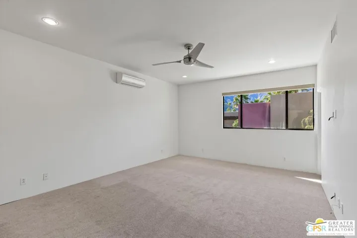 Located in the desirable 43@ at Racquet Club, this beautiful single-family residence offers the privacy of a gated community with an expanded floor plan designed for effortless desert living. A south-facing private pool and seamless indoor/outdoor flow create the perfect setting for entertaining or relaxing under the Palm Springs sun. The light-filled living room features a striking corner wall of glass that frames sweeping mountain views, bringing the outdoors in. Upstairs, you’ll find two spacious primary suites, each with its own ensuite bathroom, ideal for guests or dual living arrangements. Recently carpeted and freshly painted, the home feels crisp and move-in ready. Enjoy the convenience of a two-car garage, plus access to the community’s central greenbelt, a serene gathering space at the heart of 43@. Just minutes from downtown Palm Springs, this home delivers the perfect blend of privacy, style, and location.