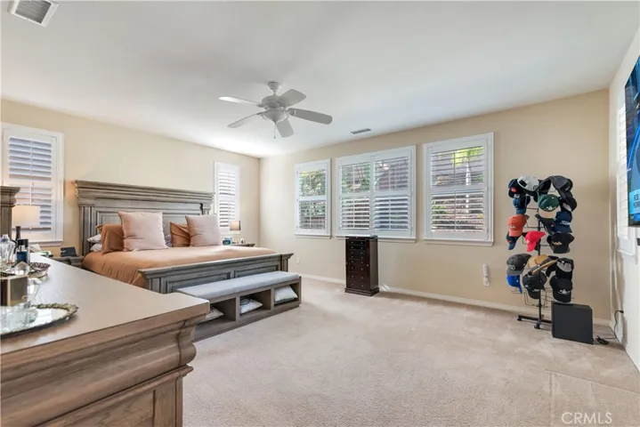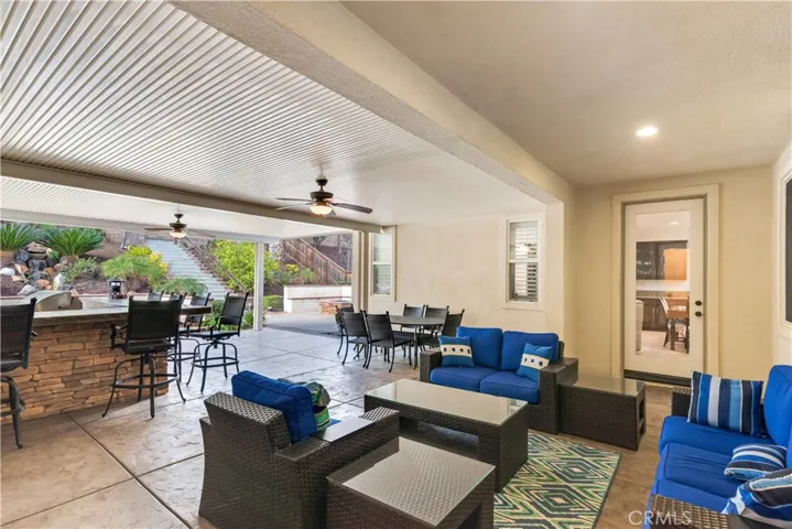Step outside and enjoy afternoons or evenings in the dream backyard, thoughtfully designed for both relaxation and entertaining. The Alumawood patio cover provides shade and protection from the elements. Enjoy cocktails at the built-in bar, prepare your favorite meals on the built-in grill, or lounge around the stacked-stone fire pit, plumbed into the home’s natural gas. Relax in the built-in spa while the hillside waterfall sets the perfect mood. The exquisitely landscaped hillside, featuring palm trees, fruit trees, and custom lighting, creates a stunning backdrop.