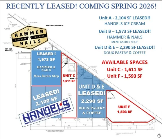 RECENTLY SIGNED LEASES!! UNIT A – 2,100 SF – HANDELS ICE CREAM – COMING SPRING 2026!!