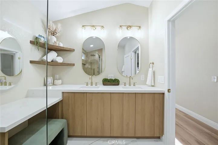 Welcome to this Turnkey, Completely Remodeled 3 Bed, 2.5 Bath Home with a bonus 90 sq. ft. LOFT featuring a Custom Murphy bed, perfect for a home office, guest space, or flex room. Thoughtfully updated from top to bottom, this home showcases brand-new flooring, a stunning brand new kitchen with a wrap-around coffee bar with extra cabinets, farm sink & all new appliances. Each bathroom has been beautifully completely remodeled. The spacious primary suite offers a custom walk-in closet and a luxurious ensuite bathroom, creating a private retreat. Additional highlights include breathtaking backyard views, ideal for relaxing or entertaining, and a 2 car garage with sealed floors & cabinets. Situated in a highly desirable, central Rancho Santa Margarita location, this home is within walking distance to O’Neill Regional Park & RSM Lake. The amenities include 12 parks, 5 community pools including the Beach Club w/ a lagoon, clubhouse, trails, tennis, pickle ball, basketball, volleyball courts & an amphitheater. This is Southern California living at its FINEST–MOVE-IN ready, award-winning schools, shops, restaurants SO close to Everything!! Make your showing appt TODAY!
