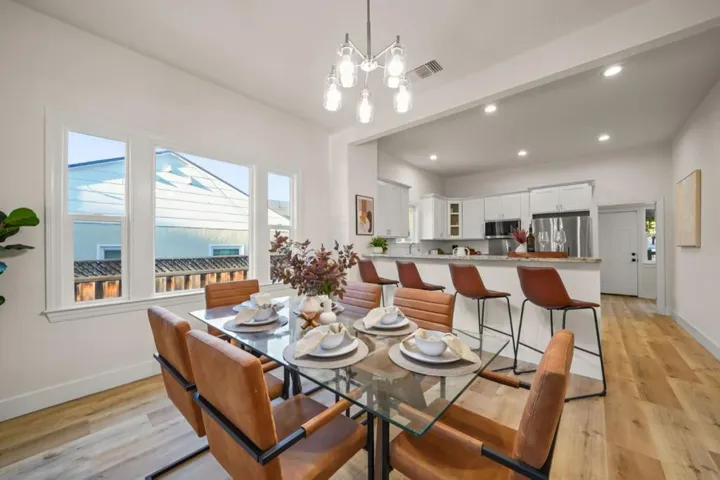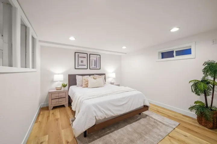 Exquisitely updated home in the heart of Downtown San Jose! This open and spacious floor plan features soaring 12-foot ceilings and offers 3 bedrooms and 2 full bathrooms, plus a basement ADU with 2 bedrooms and 1 bathroom. Ideal for extended family or rental income. Recent upgrades include freshly painted interior and exterior, brand new vinyl flooring throughout, freshly painted kitchen cabinets, newer granite countertops, and brand new stainless steel appliances including a gas range, microwave hood, and dishwasher. Bathrooms have been recently remodeled with tile walls and flooring, new vanities, and updated fixtures. Situated on a generous R2-zoned lot, the property features a side driveway that extends through the lot, providing ample parking for multiple or oversized vehicles. The placement of the existing home allows for a sizable backyard with endless potential. Add a garage, detached ADU, or expand the main residence. Unbeatable central location just minutes from SJSU, Spartan Stadium, Tech CU Arena, SAP Center, and a wide variety of dining, shopping, and entertainment. Quick access to major freeways make any commute quick and easy.