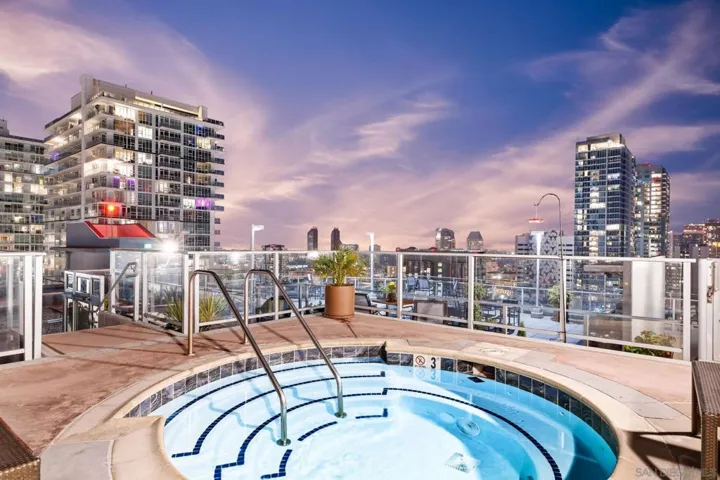 FURNISHED MIDTERM & LONG-TERM RENTAL — The Gallery Loft: Downtown’s Finest Modern-industrial 2BR / 2BA high-rise condo with sweeping bay and skyline views from every room. Floor-to-ceiling windows flood the space with natural light, while curated art and sculptural pieces give a gallery-style sophistication. Spacious terrace and private lanai offer front-row seats to San Diego’s iconic sunsets and city lights. Open-concept layout includes a sleek kitchen with high-end appliances, indoor/outdoor dining spaces, and comfortable living area ideal for entertaining or unwinding. Primary suite features en-suite bath and direct terrace access; second bedroom offers equally stunning views. Building amenities include a rooftop jacuzzi, lounge seating, and panoramic views of downtown and the bay. Unit includes A/C, in-unit laundry, and secure on-site parking. Located in the heart of East Village—steps to world-class dining, rooftop bars, galleries, shops, Petco Park, and the Gaslamp Quarter—with easy trolley access throughout the city. Sleeping Setup (max 4): BR1 Queen • BR2 Queen • 2 Full Baths Minimum 30-day stay. Monthly rates vary by lease length; please inquire for an exact quote. Rates reflect short-term rental pricing and vary by season and duration. Published amounts are estimates; final pricing, fees, and availability are subject to change until a signed agreement.
