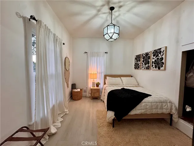 Fully Furnished Flexible MTM/ six, twelve month rental. Come lease this beautifully restored 1912 Farmhouse right inside the boundries of Floral Park, one of the most desired neighborhoods in Santa Ana. This house is probably one of the last few farmhouse style bungalows left in the neighborhood with great curb appeal and an awesome front porch. Sit back and relax on your front porch swing sipping lemonade watching the world go by. This 3 bedroom 1 bath single level home lives large. The high ceilings, white walls, black accents, light oak floors, large windows and french doors give you a very nice clean and open feel as you walk in. One of our favorite areas in this home is the outdoor living room. This space has a built in BBQ, with a fridge, plenty of storage and space to lounge with your friends and family. The pink and red Bougonvillas and the hand painted black and white concrete tiles also gives this space a nice accent. Back inside in the living room, is your dining area and two bedrooms. Through the barn door, you will see the farmhouse inspired kitchen equipped with a opened shelving, white quartz counters, a deep farmhouse sink, a large Samsung fridge, dishwasher, a pantry with a built-in microwave and lots of windows. The 3rd bedroom or large closet and main bathroom is located on this side of the house. This home’s design and style was ripped right out of the pages of Magnolia Magazine. Before you head outside down the steps to the backyard, you have another room which we call the “Nook”. This room is for your washer dryer and large enough for a desk and a lounge chair. It is our Cali Mud room. On to the back yard!! It is large, paved, pebbles, lots of shrubs, a raised herb garden and beautiful roses. Sprinkler system is also installed to keep the gardens green. The home also has automated accent garden lighting throughout. A cute birdbath and a beautiful 3 tiered fountain invites the birds and butterflies to come and enjoy the fresh water daily. There is a Persimmon tree and two lemon/lime trees that produce fruit all times of the year. The off street parking right out front in your paved driveway is such a plus!! Also you have a private gate to enter the home from the alley. Large enough to park 2 or 3 more cars even an RV. CLOSE to CHOC, Bowers Museum, Main place Mall The Cube and approx four miles to Disneyland.