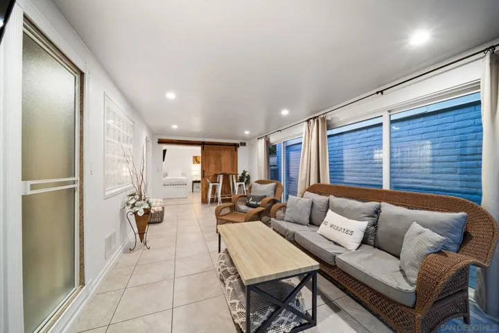SHORT-, MID- & LONG-TERM FURNISHED RENTAL — Stunning View Estate with Pool & Game Room Panoramic ocean, city, and sunset views define this remarkable single-story hilltop estate in La Mesa. Formerly owned by a celebrity, this expansive 5,600+ sq ft home offers 6 bedrooms, 4 bathrooms, and unforgettable west-facing views from most rooms. Ideal for large families or two families traveling together, the open floor plan allows natural light and scenery to flow seamlessly throughout the living spaces. The home features a spacious living room, family room, and dedicated game room with pool table. The chef’s kitchen is fully equipped with stainless steel appliances, generous pantry space, bar seating, and multiple dining areas including a table for six, island seating, and breakfast nook. Outdoor living includes a saltwater pool with waterfall, propane fire pit, BBQ grill, and expansive patio perfect for relaxing and enjoying San Diego’s year-round climate. A removable pool fence is available upon request. This is not a party house and is best suited for respectful guests. Conveniently located minutes from La Mesa Village and a short drive to downtown San Diego, beaches, and major attractions. Sleeping setup (max 16): Primary CA King; Queen; Two Fulls; Queen; King; Kids room with Twin plus Twin bunk; plus living room sleeper sofa and twin ottoman bed. Rates vary by season and length of stay. Published amounts are estimates; final pricing, fees, and availability are subject to change until a signed agreement. Please inquire for an exact quote.