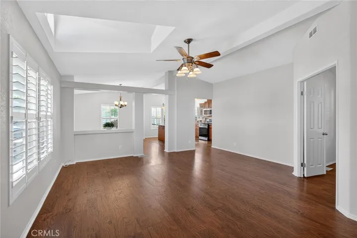 Step inside the bright and open floor plan accented by vaulted ceilings and large windows filling the home with soft natural light. Beautiful laminate plank flooring flows throughout the living area creating an inviting setting for entertaining or everyday living.
