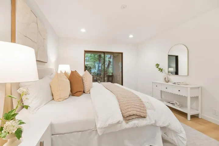 Tucked within the beautifully maintained Mercedes Court complex, this bright 2BD/2BA condo (Unit 24) features fresh paint, a newly updated primary bath, & inviting indoor-outdoor flow to decked living. The open living area centers around a cozy fireplace & extends to a private balcony, perfect for relaxing or entertaining. A well-equipped kitchen connects seamlessly to a sunlit dining area. The spacious primary suite includes a private balcony, walk-in closet, & updated ensuite bath, while a generous guest room & updated hall bath complete the layout. Additional highlights include in-unit laundry closet, ample storage, & access to the sparkling community pool. Enjoy a prime location close to Downtown Los Altos, where boutique shops, cafés, & acclaimed restaurants like ASA, The Post, & Red Berry Coffee Bar create a vibrant dining scene. Nearby parks including Shoup Park, Lincoln Park, & Redwood Grove Nature Preserve offer peaceful outdoor escapes just minutes away. Convenient to San Antonio Center, top-rated Los Altos schools, & HWY 82 for easy Peninsula access. Right next to the complex on Mercedes, a convenient trailhead offers easy access to walking & biking paths, providing a quick escape into nature for morning exercise, evening strolls, or weekend adventures