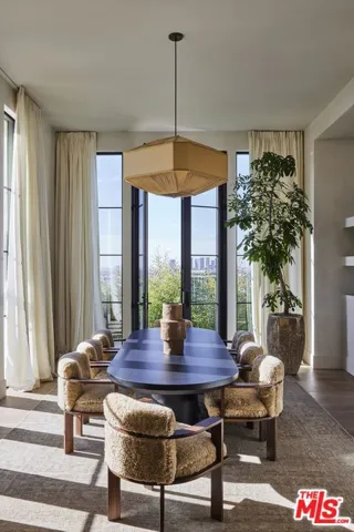 OSKLO has reimagined this Hollywood Regency Villa, tucked behind grand gates and a motor court at the end of an exclusive cul-de-sac. A remarkable surprise awaits: a single-level masterpiece perched on an approximately 2/3-acre view promontory. Recently completed after a multiyear renovation, this home boasts soaring ceilings, an open floor plan, and expansive public spaces that seamlessly transition to broad terraces and a generous pool. Revel in breathtaking views stretching from Downtown to the Pacific Ocean. The glamorous living room features a hidden white marble bar, while the gourmet kitchen is a true standout. The impressive dining room, complete with a fireplace, sets the stage for grand entertaining. A richly paneled library and billiard room enhance the home’s allure. The primary suite is exceptional, with Calacatta Viola marble flowing from the indoor shower to the outdoor areas. Three additional guest rooms further distinguish this extraordinary residence, which is shown exclusively to prequalified lessees.