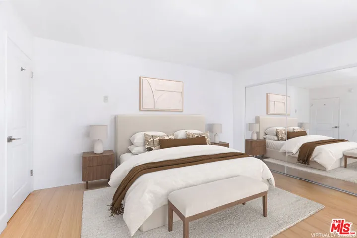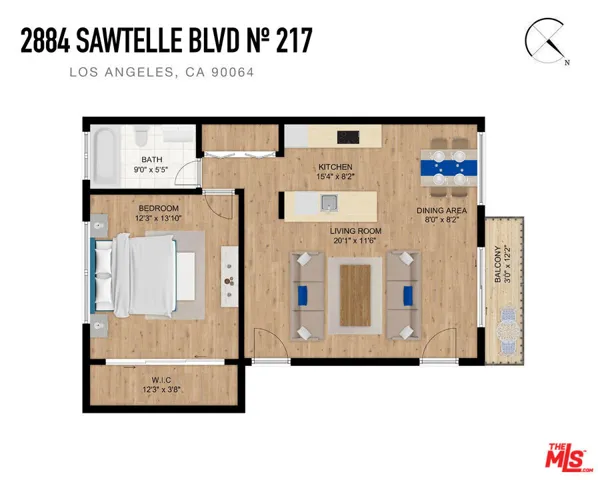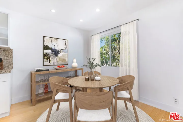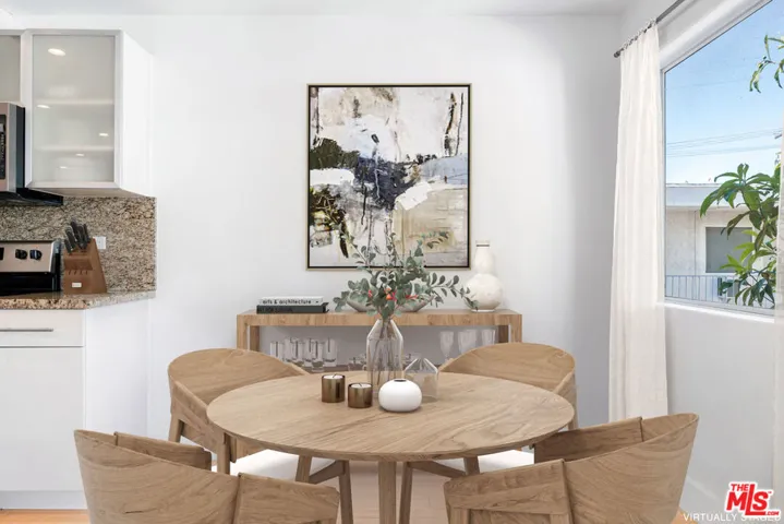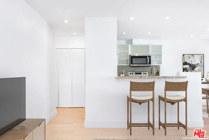 This exceptionally stylish and recently remodeled 1-bedroom, 1-bath condo offers approximately 700 square feet of modern living in a desirable pet-friendly community. The open contemporary floor plan showcases a crisp color palette, beautiful bamboo flooring, and abundant natural light throughout, with a spacious living room that opens to a private balcony through sliding glass doors. Designed for easy entertaining, the open-concept kitchen is appointed with stainless steel appliances, granite countertops, a breakfast bar, white and frosted glass cabinetry, an electric range and oven, built-in microwave, brand-new dishwasher, recessed lighting, and a dedicated dining area. The generously sized primary bedroom features a mirrored closet and is complemented by a modern full bathroom with a shower/tub combination and a back-lit storage vanity. Additional highlights include two covered gated parking spaces, in-unit laundry, a keypad security entrance, electric air conditioning, radiant heat, and low HOA fees, all with convenient access to public transportation, UCLA, popular shopping and dining along Sawtelle, the 10 and 405 freeways, and the upcoming Google headquarters at One Westside. Original Images: https://bit.ly/2884SawtelleBlvd217-Original
