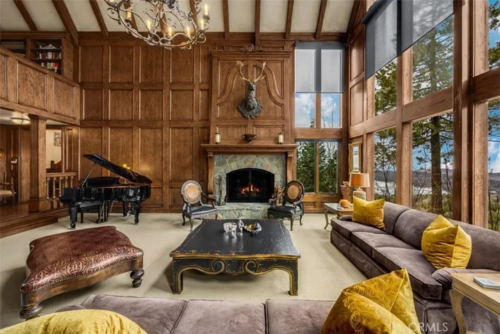 The castle atop the highest point in Gated Cedar Ridge Estates. Private and secluded compound. Spectacular lake views. Approximately 18.5 acres. Main home is 7488 sq ft with 5 huge bedrooms with a magical fantasy children’s bedroom that sleeps 6. 7 ¾ baths. Gym, Sauna, Gourmet kitchen with top-of-the-line appliances. Gentlemen’s office with exquisite woodwork and spectacular fireplace. Lady’s office with exquisite glass entry doors. Poker room. Enormous living room with approx. 30 ft ceilings.